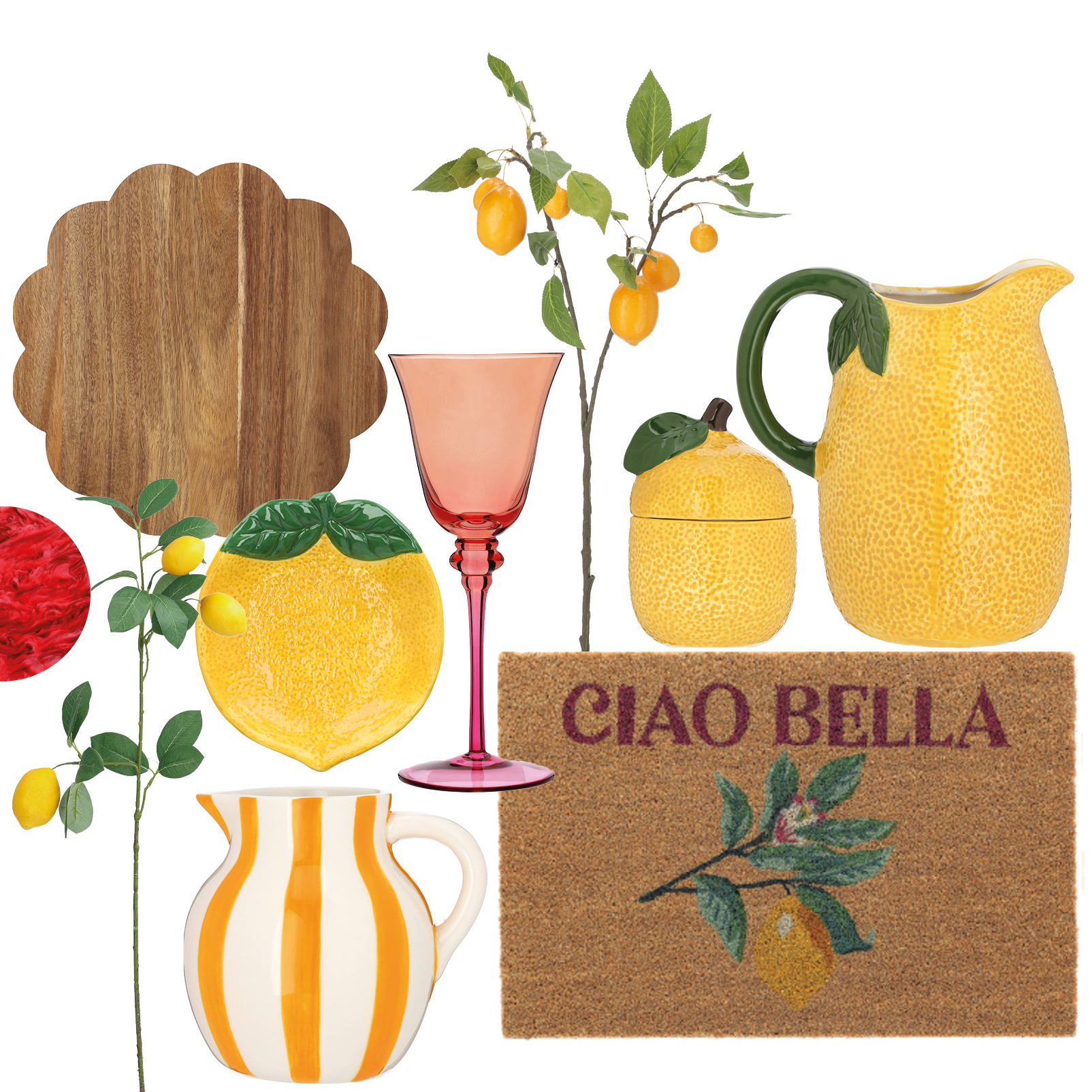 Mijn favoriet is de serveerplank, de citroen-voorraadpot en de te leuke gestreepte karaf. En oké, eigenlijk ook het schaaltje, de takken en…